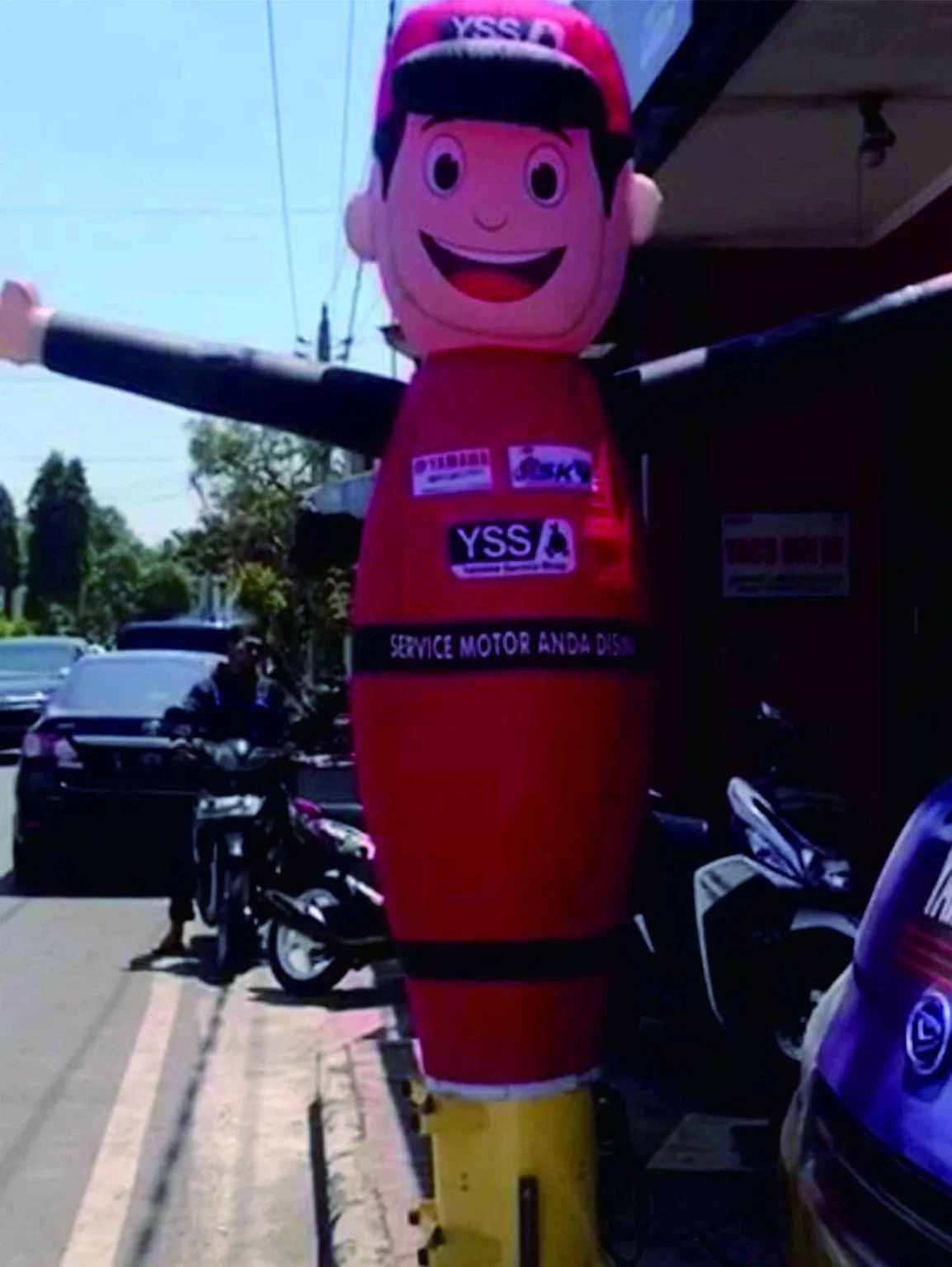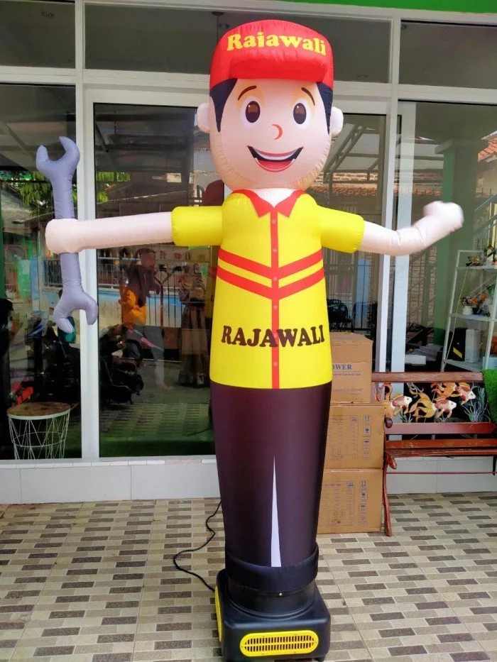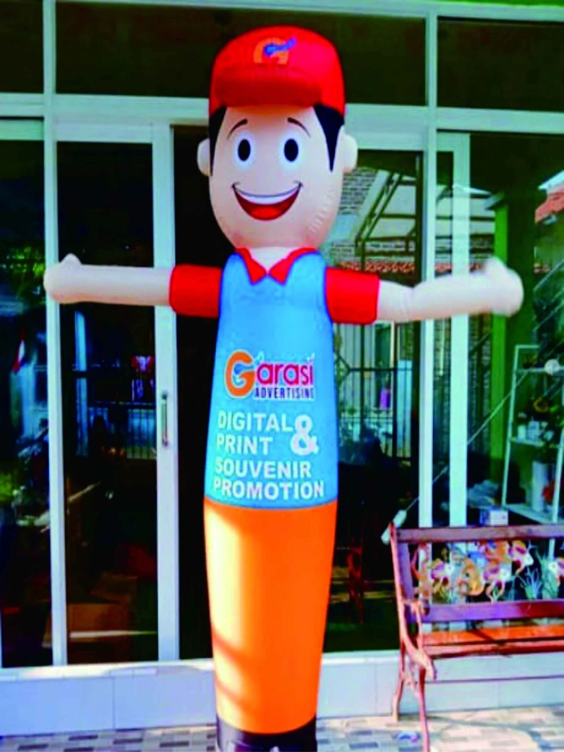 Produk ini berbentuk manusia balon tinggi yang menari-nari karena tekanan udara dari blower di bawahnya. Cocok banget untuk promosi toko, showroom, atau acara besar di luar ruangan.